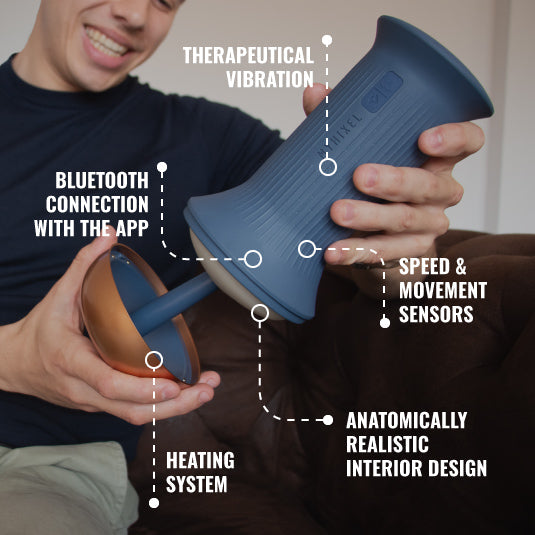 The MYHIXEL II device features a soft and lifelike sleeve with built-in heating and gentle vibrations. Paired with the Play App, it’s the best natural way to understand your body and improve your climax control.